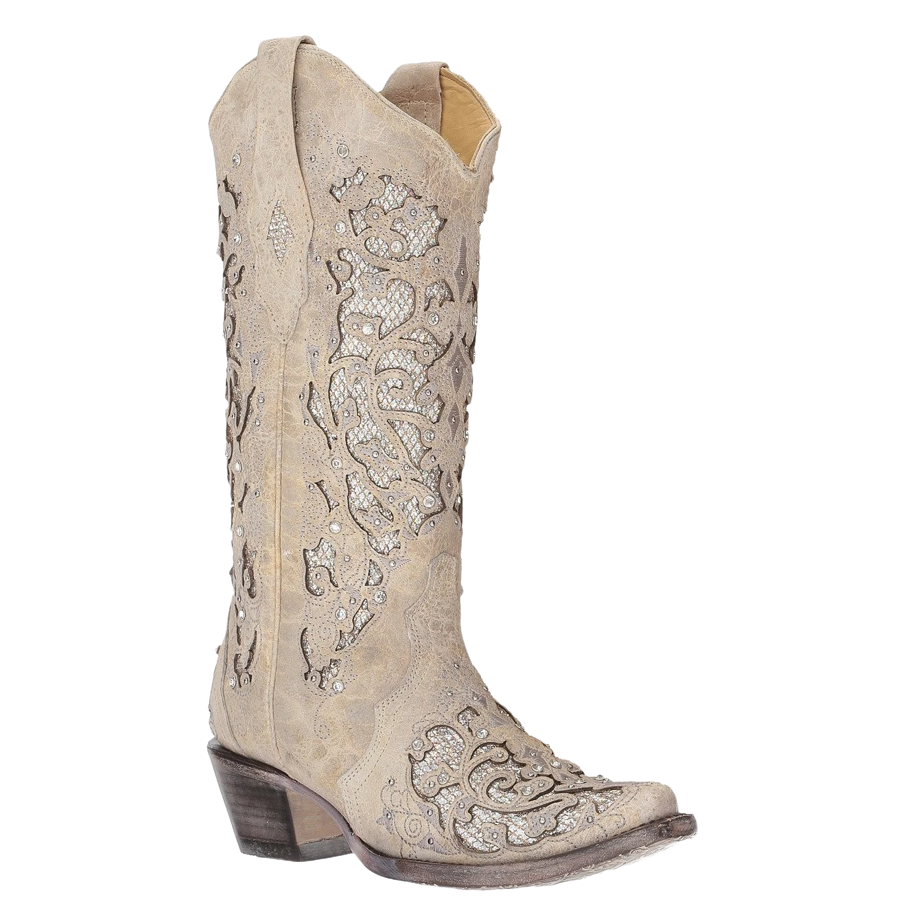 Corral Boots Corral Ladies Martina White Glitter Inlay Crystals Wedding Boots A3322