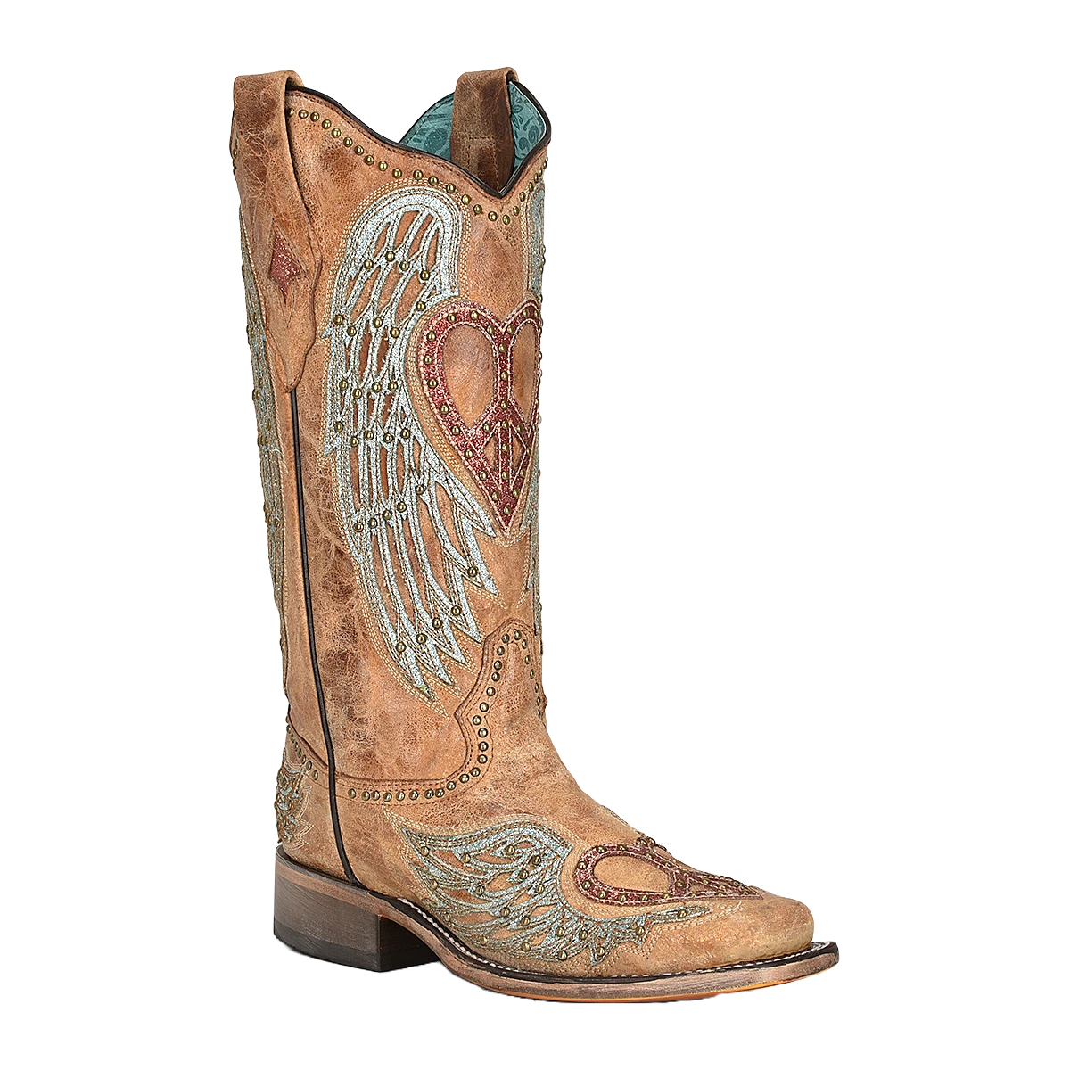 Corral Boots Corral Ladies Sandy Heart & Wings Tan Square Toe Boots A4313