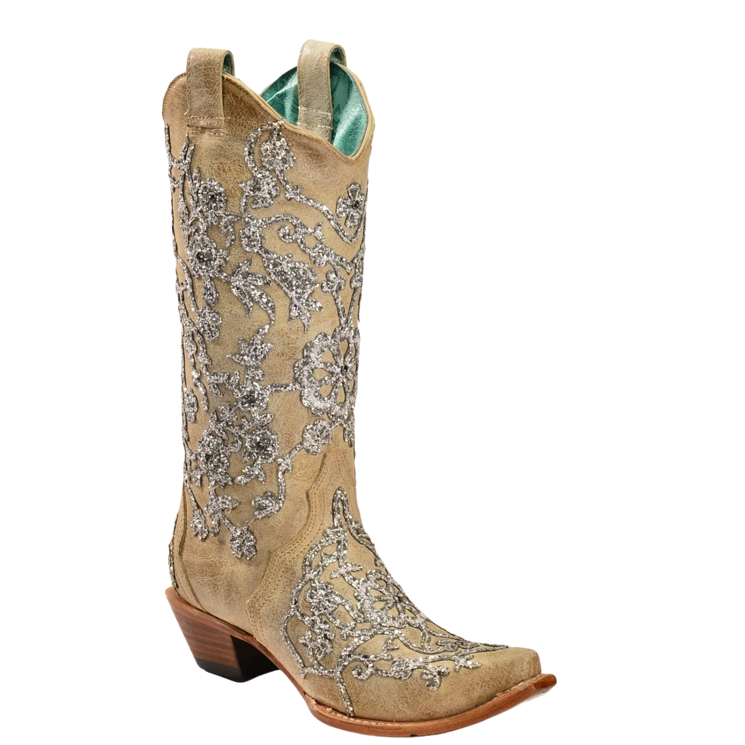 Corral Boots Corral Ladies Scarlett Bone Glitter Overlay Embroidery & Crystals Boots C3356