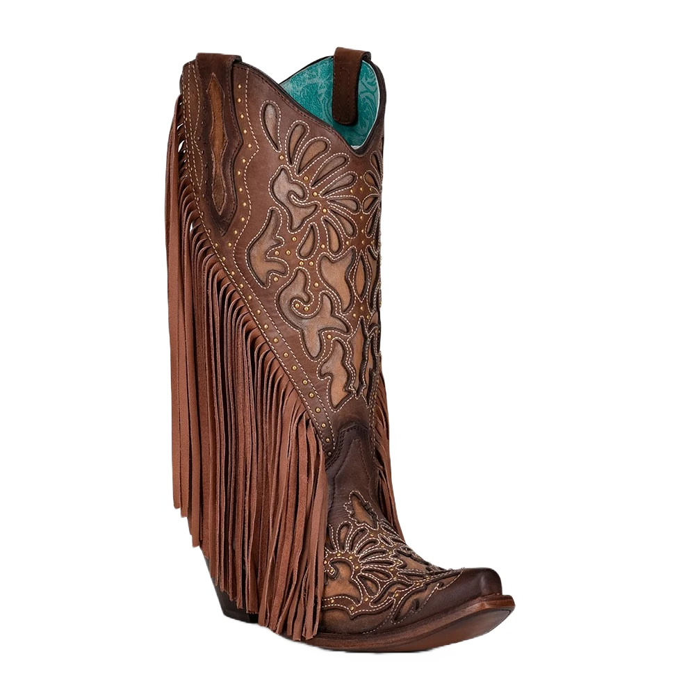 Corral Boots Corral Ladies Studs & Fringed Chocolate Laser & Embroidery Boots C3765