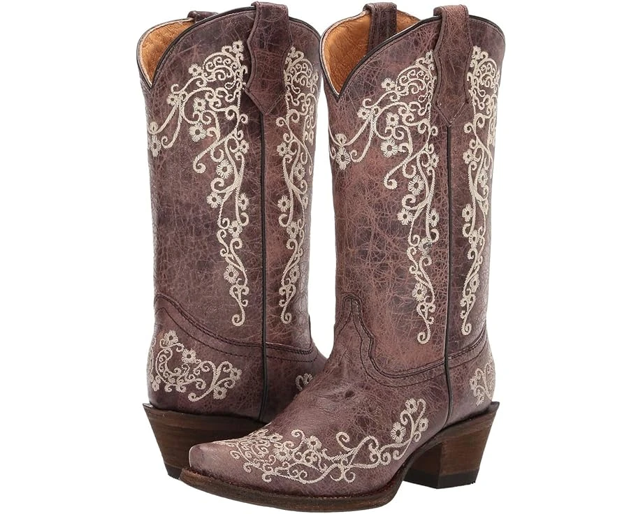 Let her dress up her cowgirl cool with the fashion-forward Corral® Boots Kids A2773 western boots.SKU: #9171894Distressed leather uppers adorn detailed western stitching.Pointed-toe styling.Boot pulls provide easy on-and-off.Supple leather lining.Smooth padded leather insole. Stacked wooden heel.Handsanded wooden outsole with rubber heel tab.Imported.Product measurements were taken using size 2 Little Kid, width M. Please note that measurements may vary by size.Weight of footwear is based on a single item, not a pair.Measurements:
